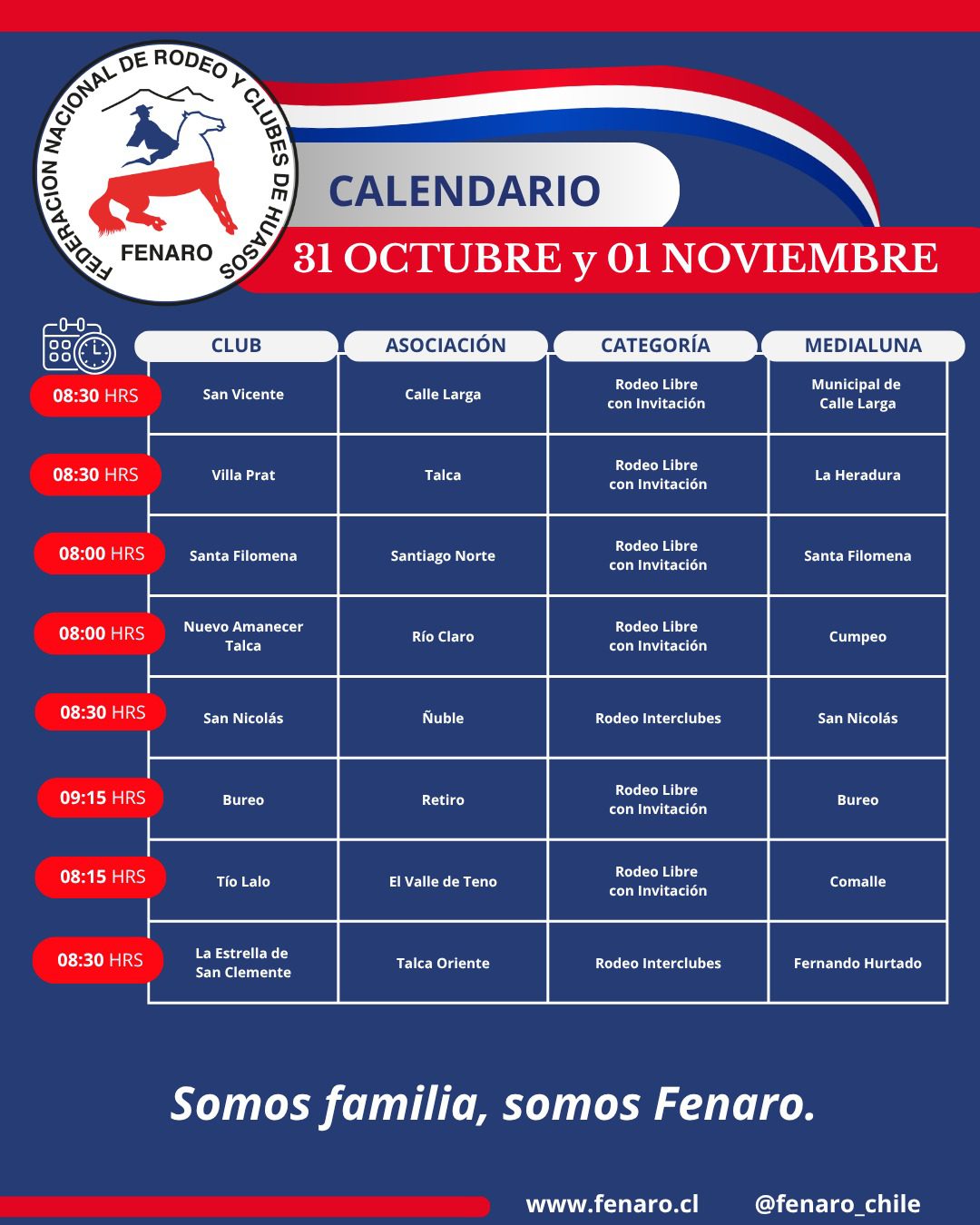 By Administracion Comunicaciones 30 octubre 2025 Noticias Calendario Fenaro del viernes 31 octubre al domingo 2 noviembre 2025