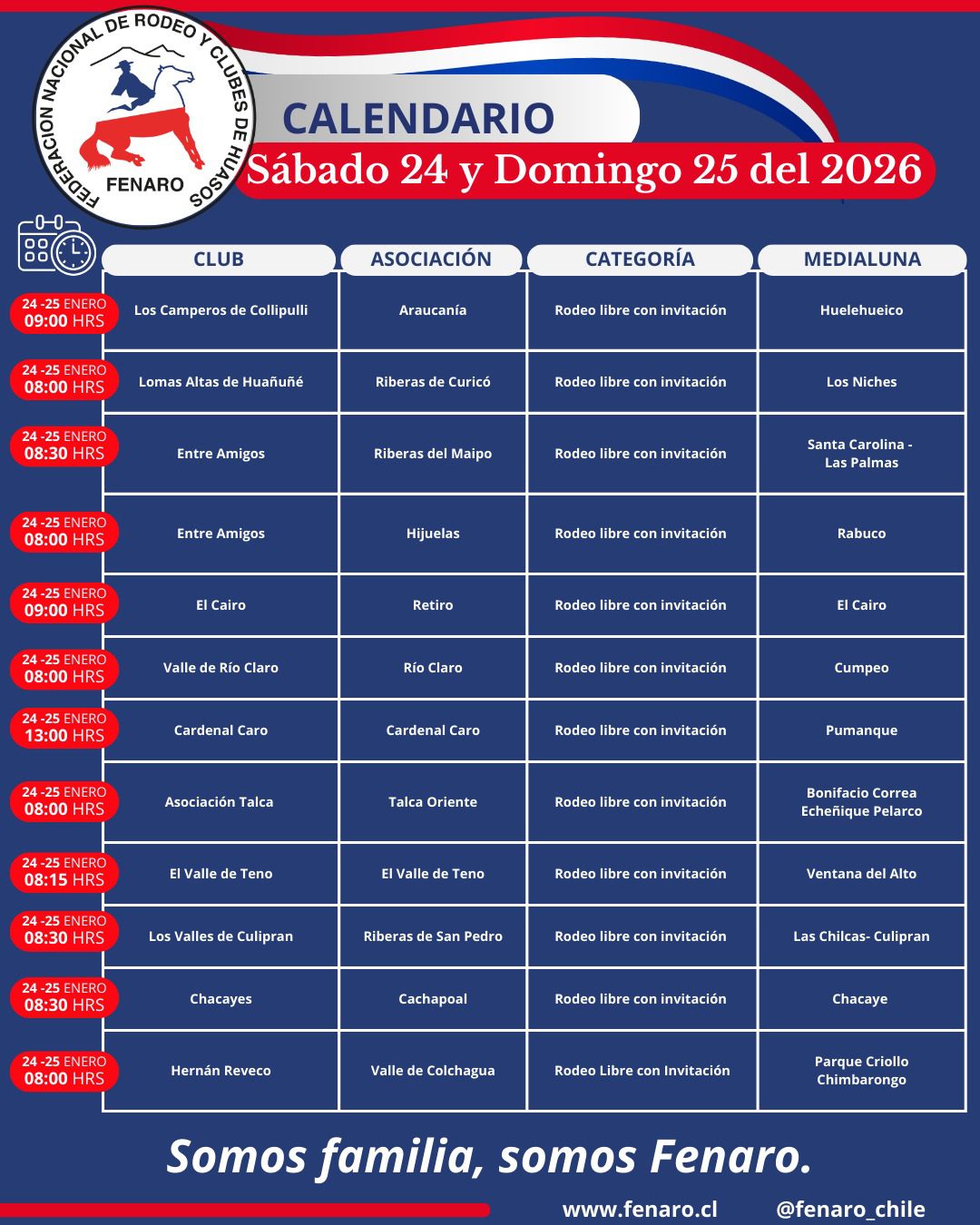 Fecha: 17 y 18 Enero 2026Medialuna: La Union de CodiguaCategoría: Libre con InvitaciónJurado: Próspero Morales A.Delegado: Teresa Moreno C.Primer lugar: Gustavo Carrasco y René Carrasco de la Asociación Riberas del Maipo en Garrincho y Tornado con 11-3 en el desempate. Segundo lugar: Daladier Milla y Cristián Avendaño de la Asociación Santiago Norte en Pigor y Relevante con 11-1 en el desempate. Tercer lugar: Gonzalo González y Alex Calderón de la Asociación Riberas del Maipo en Inesperada y Jugarreta con 10 puntos buenos.El ejemplar elegido como Sello de Raza fue la yegua “Chica Linda” montado por Alfredo Cerda. Mientras que el campeón