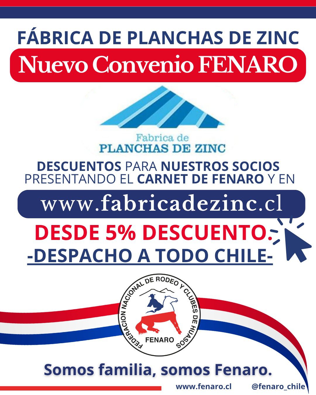 Tendrán descuentos para nuestros socios presentando el carnet de Fenaro y también a través de https://www.fabricadezinc.cl/